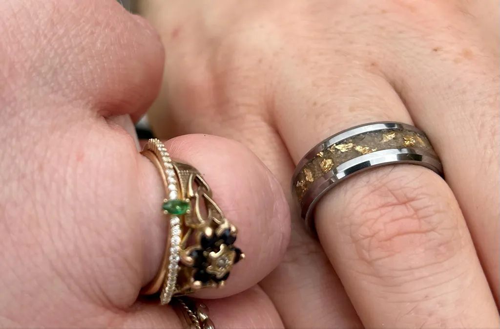 Embark on a journey through millennia with The Pharaoh's Eternity Ring, meticulously crafted to showcase the allure of ancient Egypt. This unique masterpiece features a captivating blend of authenticity and luxury, incorporating real Pyramid of Giza sand, gleaming gold accents, and rare Libyan Desert Glass Tektite.