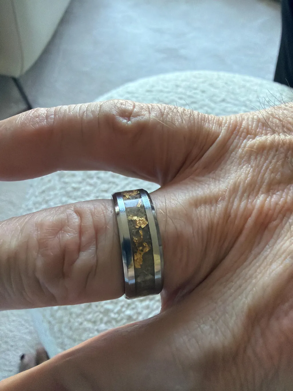 Pharaoh's Eternity: Tungsten Carbide Ring with Pyramid Sand, Gold, and Desert Glass Tektite